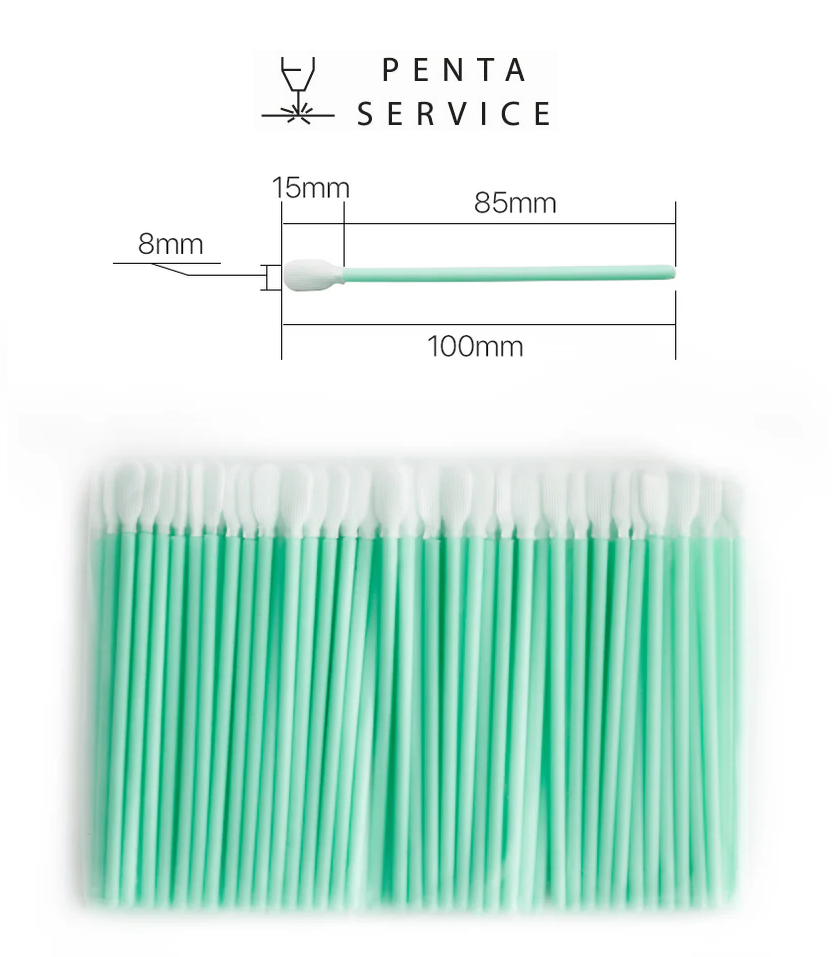 Для очистки оптики важно использовать безворсовые чистящие палочки (свабы). Палочки применяют для точечного удаления инородных частиц с поверхности оптической детали. Они не оставляют микроскопических частиц ворса, которые могут пригореть к линзе так же, как и пыль, поэтому их использование исключает риск повреждения деталей. Они имеют нежную текстуру, идеально подходящую для очистки поверхностей оптических элементов. Палочки удобно использовать в сочетании с изопропиловым спиртом, который удаляет с поверхностей отпечатки пальцев, жировой налет и другие загрязнения.