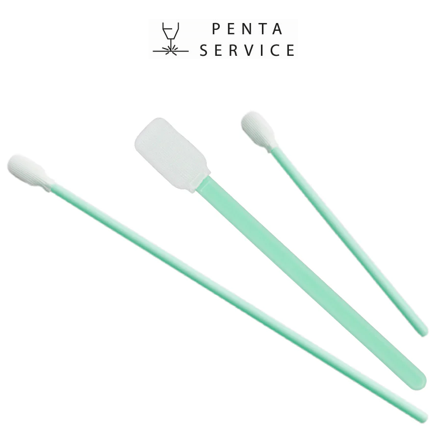 Для очистки оптики важно использовать безворсовые чистящие палочки (свабы). Палочки применяют для точечного удаления инородных частиц с поверхности оптической детали. Они не оставляют микроскопических частиц ворса, которые могут пригореть к линзе так же, как и пыль, поэтому их использование исключает риск повреждения деталей. Они имеют нежную текстуру, идеально подходящую для очистки поверхностей оптических элементов. Палочки удобно использовать в сочетании с изопропиловым спиртом, который удаляет с поверхностей отпечатки пальцев, жировой налет и другие загрязнения.